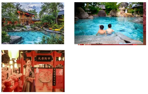 The Tang-style Hot Spring Zone is officially named "Tang Dynasty Fenglu Open-air Hot Spring". This cultural destination features four themed zones: the "Jiangnan Huaqing Pool Cultural Hot Spring Zone", "Fashan Xiangtang Cultural Hot Spring Zone", "Four Seasons Blooming Fashion Leisure Cultural Hot Spring Zone", and "Tang-style Homestay Private Hot Spring Zone". The complex also includes a year-round heated pool, fitness center, and movie theater. Visitors can immerse themselves in authentic hot spring therapy, experience the timeless wisdom of Chinese thermal wellness traditions, and appreciate the exquisite artistry of classical Chinese garden design.