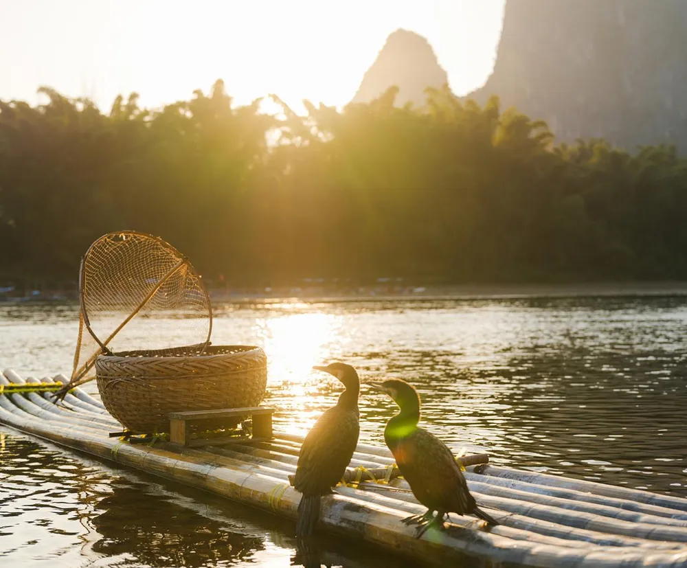 The Yulong River, a tributary of the Lijiang River, is known as “the Little Lijiang River”. Bamboo rafting on the Yulong River is a classic experience. The river is gentle and clear, and the mountains on both sides are green and beautiful. Unlike the busy Lijiang River cruise, the Yulong River is more quiet and beautiful. The local boatmen have inherited the tradition of bamboo rafting for generations, and some can sing folk songs. During the rafting, visitors can enjoy the idyllic scenery of rural Guangxi, with farmers working in the fields and ancient stone bridges spanning the river, feeling the peace and tranquility away from the hustle and bustle of the city.