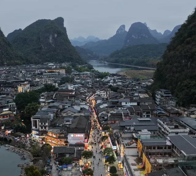 With a history of more than 1,400 years, Yangshuo West Street is one of the oldest streets in Guangxi and a famous international tourist pedestrian street. It was originally a commercial street for local villagers, and gradually became a gathering place for foreign tourists in modern times. The street is paved with bluestone slabs, with a combination of Chinese and Western buildings on both sides. There are both traditional Chinese snack bars and western cafes and bars. It is a place where Chinese and foreign cultures blend. Visitors can buy local handcrafts, taste authentic Guilin rice noodles, and also communicate with foreign tourists, experiencing a unique cross-cultural atmosphere.