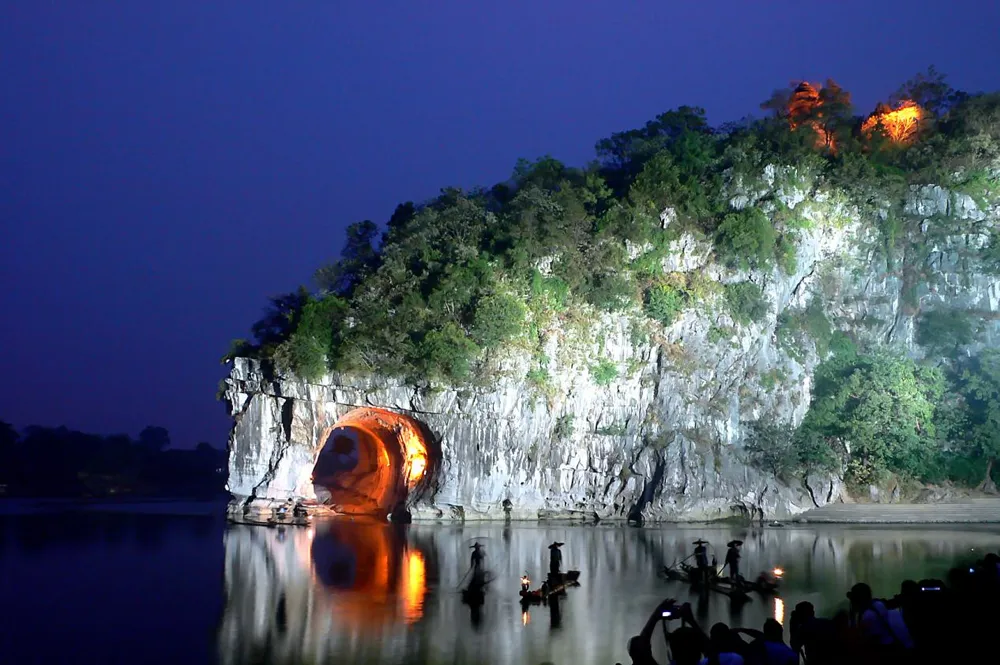As the symbol of Guilin, Elephant Trunk Hill gets its name because its shape is exactly like a giant elephant drinking water by the river. It has a history of more than 1,000 years and has been a must-visit place for literati and poets since the Tang and Song dynasties. There are many cliff inscriptions on the mountain, recording the poems and travel notes of past celebrities. The Shuiyue Cave under the elephant’s trunk is a famous landscape, where the reflection of the moon in the water forms a wonderful picture at night. It is not only a natural wonder, but also a cultural carrier bearing the historical memory of Guilin.