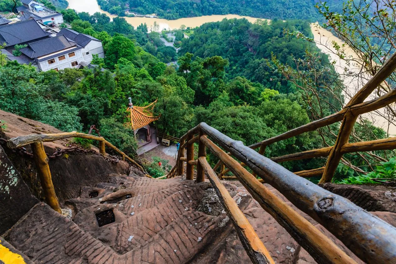 Wuyou Mountain is located on the west bank of the Minjiang River, opposite the Leshan Giant Buddha. It is a famous Buddhist mountain with a history of over 1,700 years. The mountain got its name because it is surrounded by water and looks like a floating island. The main temple, Wuyou Temple, was built in the Eastern Jin Dynasty and is one of the earliest Buddhist temples in Sichuan. It houses many precious cultural relics, including the stone carvings of the Tang Dynasty and the wooden Buddha statues of the Ming Dynasty. The mountain is covered with green trees and has a quiet environment, with scenic spots such as the White Cloud Pavilion and the Plum Blossom Garden. It is a peaceful place for meditation and sightseeing, with a panoramic view of the Leshan Giant Buddha and the Minjiang River.