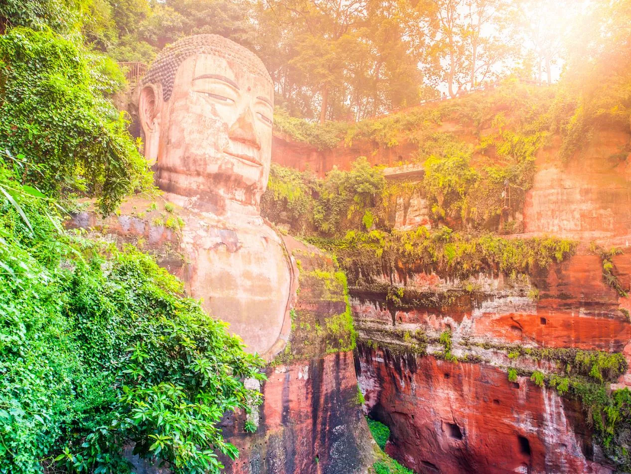 Carved on the cliff at the confluence of the Minjiang, Dadu and Qingyi rivers, the Leshan Giant Buddha is the world’s largest stone-carved sitting Maitreya Buddha, a UNESCO World Heritage Site. Construction began in 713 AD during the Tang Dynasty and took 90 years to complete. The Buddha stands 71 meters tall, with its ears 7 meters long and feet 8.5 meters wide, capable of accommodating over a hundred people on its sole. It was built to calm the turbulent river currents and protect passing ships. The drainage system hidden in the Buddha’s body shows the extraordinary wisdom of ancient craftsmen. The surrounding scenic area includes Lingyun Temple, Dongpo Tower and other historical sites, and visitors can view the giant Buddha from the river by boat for a panoramic view.