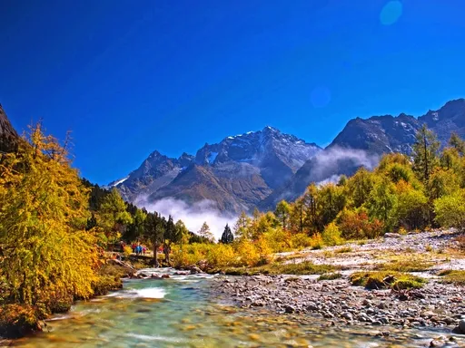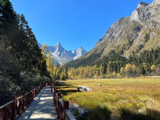 Bipenggou is a beautiful alpine valley scenic area in Li County, with magnificent natural landscapes. It features snow-capped peaks, glaciers, alpine lakes, forests and meadows. The valley is covered with green trees in spring and summer, and the mountains are dyed red and yellow in autumn, presenting a colorful picture. In winter, it is a world of ice and snow, ideal for skiing and snow sightseeing. The scenic area also has rich Tibetan culture, with Tibetan villages scattered in the valley, where visitors can experience the traditional Tibetan life and customs.