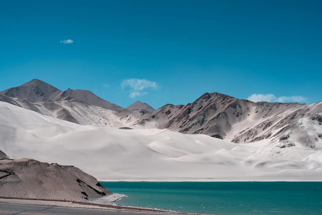 Nestled at the foot of the Pamir Mountains, Baisha Lake is a stunning alpine lake with crystal-clear blue water, surrounded by white sand dunes and snow-capped peaks, creating a surreal and beautiful landscape. The lake’s wate r is so clear that it reflects the surrounding mountains and sky, forming a mirror-like effect. The white sand dunes, formed by wind erosion, are a unique natural wonder, contrasting sharply with the blue water and green grass around the lake. The area is also an important habitat for rare birds such as swans and bar-headed geese. Visitors can take a walk along the lake shore, enjoy the peaceful atmosphere, and take photos of the breathtaking scenery. The nearby Tajik villages offer a chance to experience the local people’s simple and warm customs, making Baisha Lake not just a natural attraction but also a cultural experience destination.